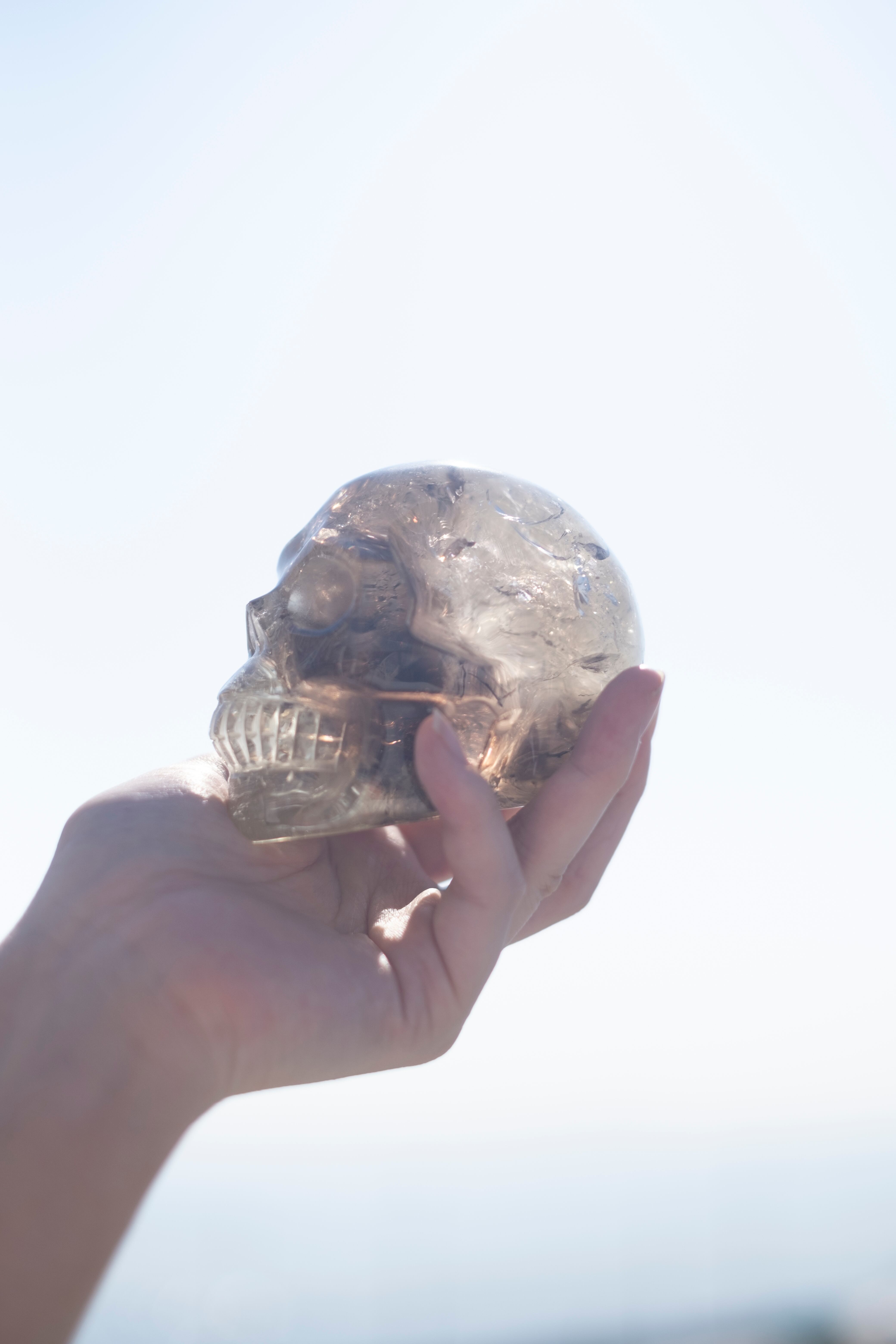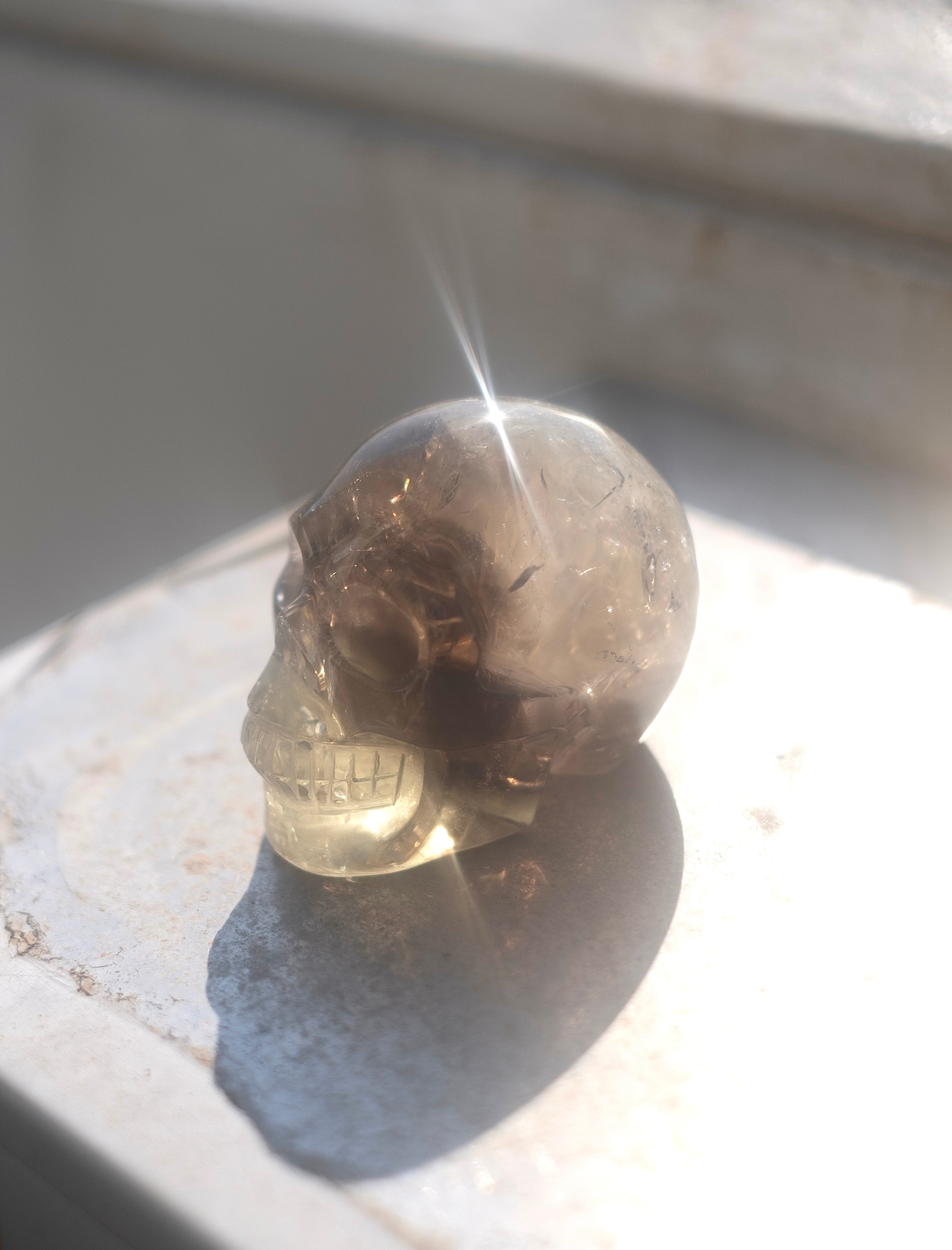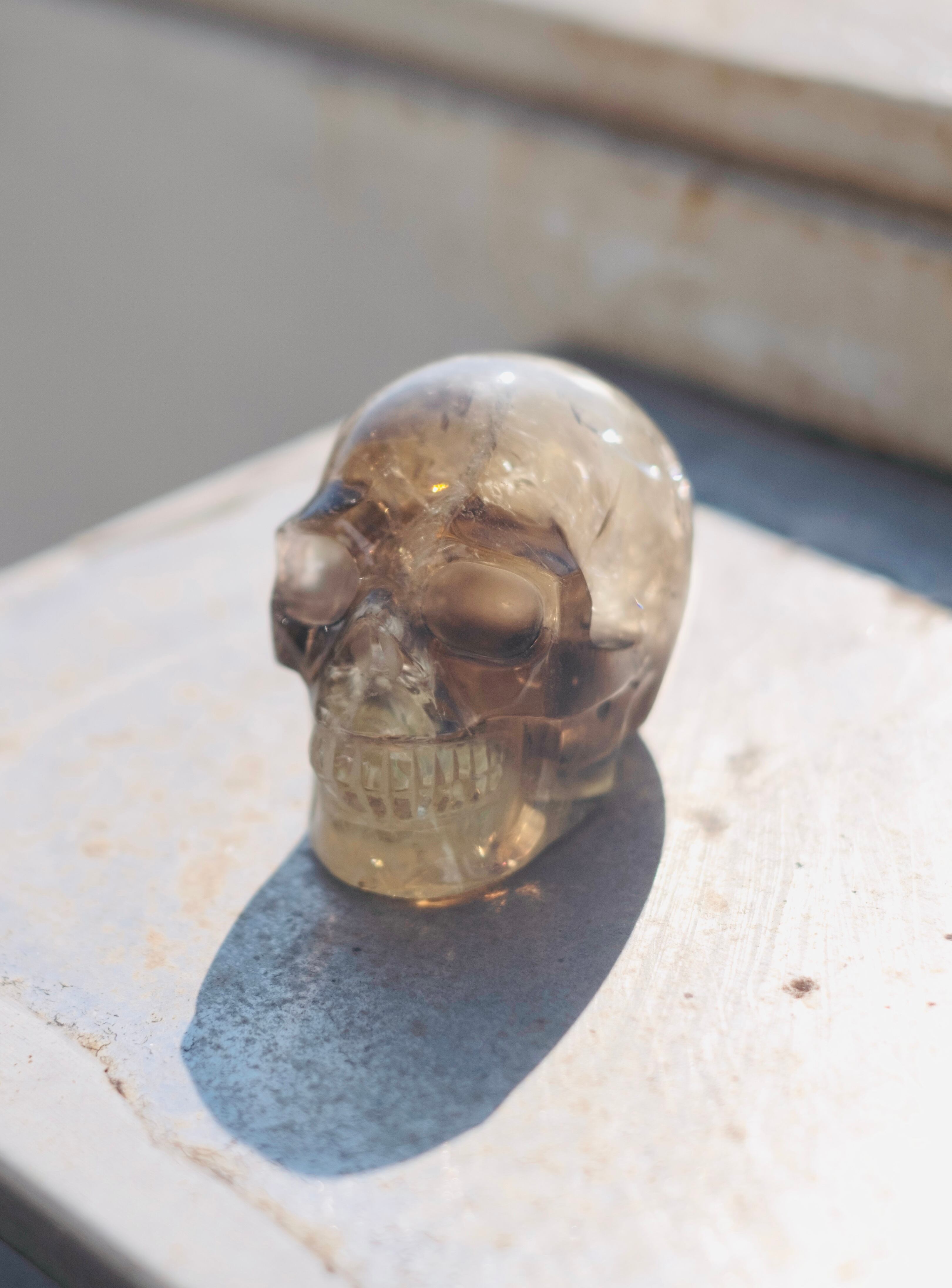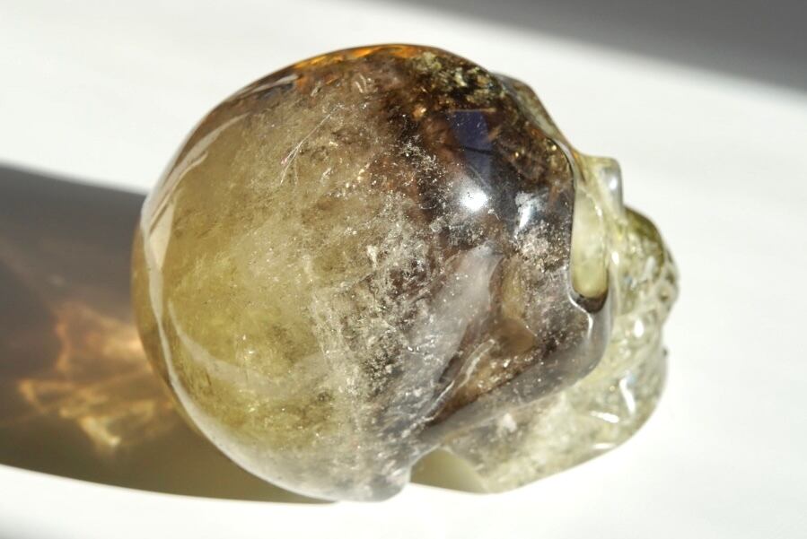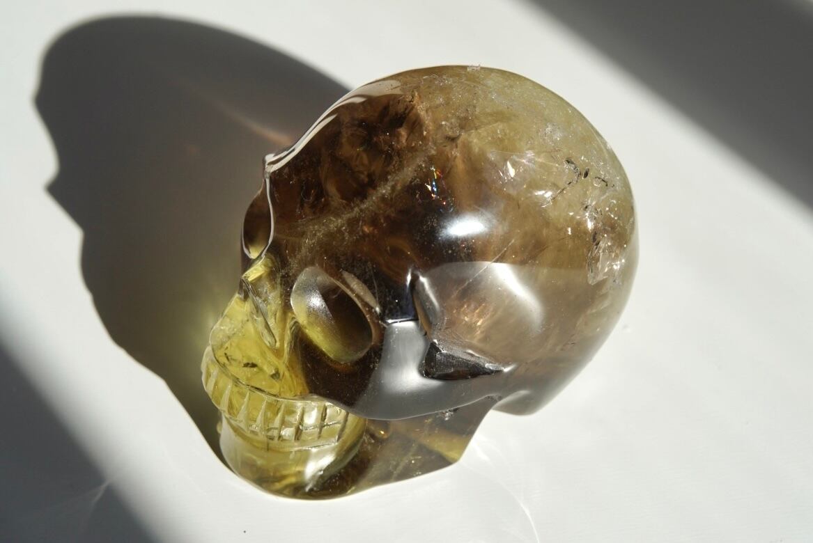 精巧に彫られた美しいスモーキーシトリンスカル。