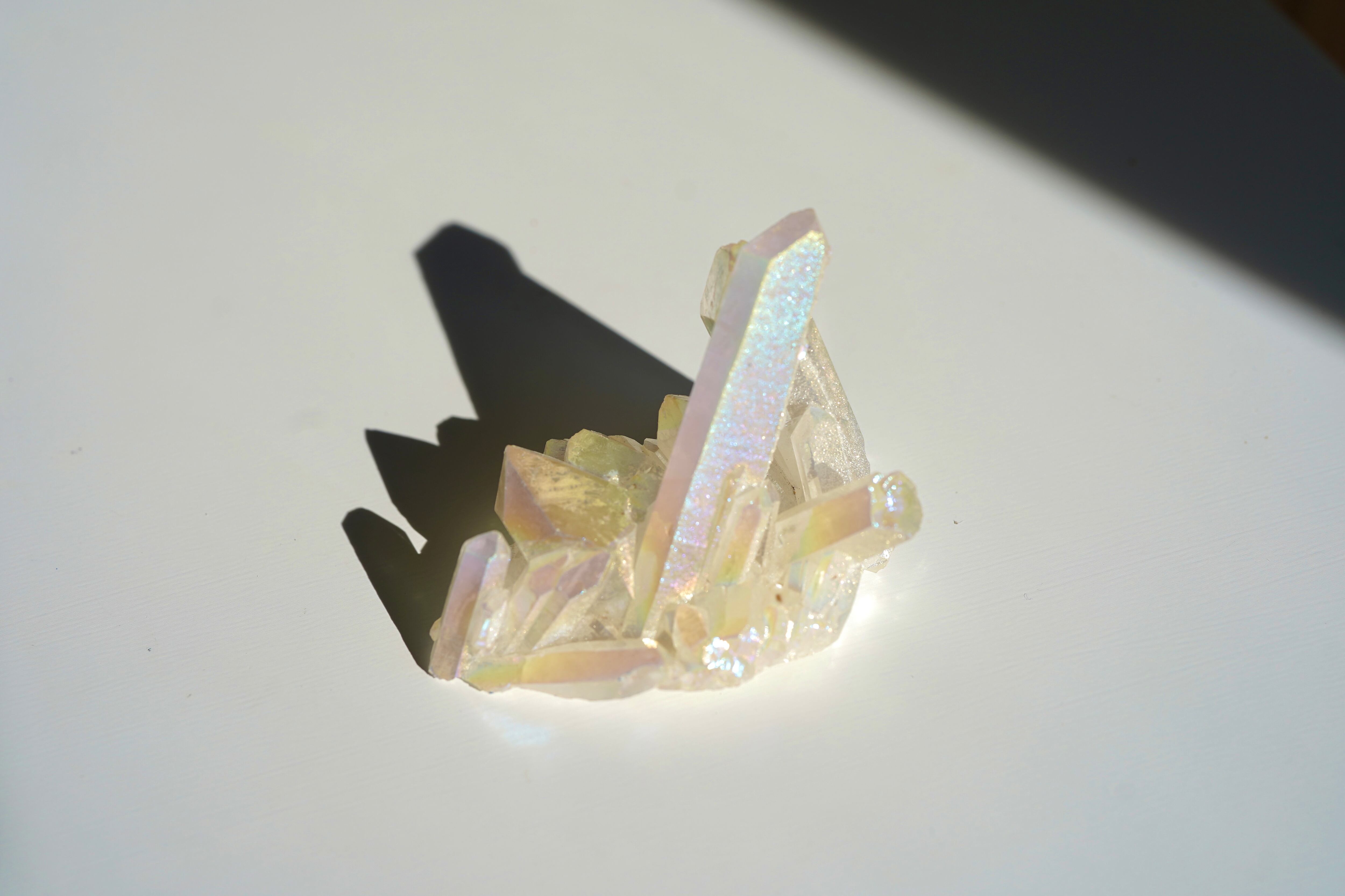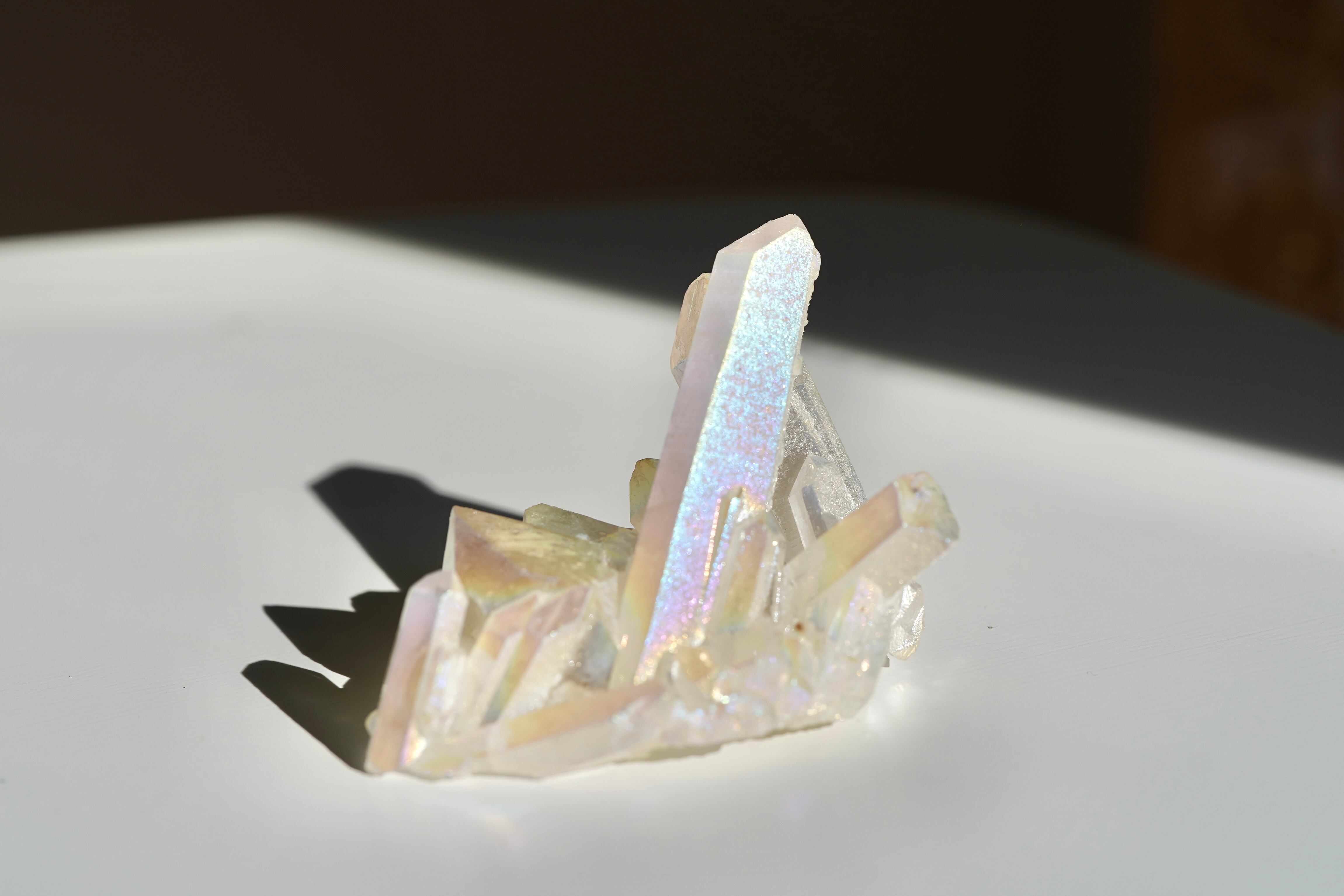 天然の水晶にチタンを蒸着させて作られる、